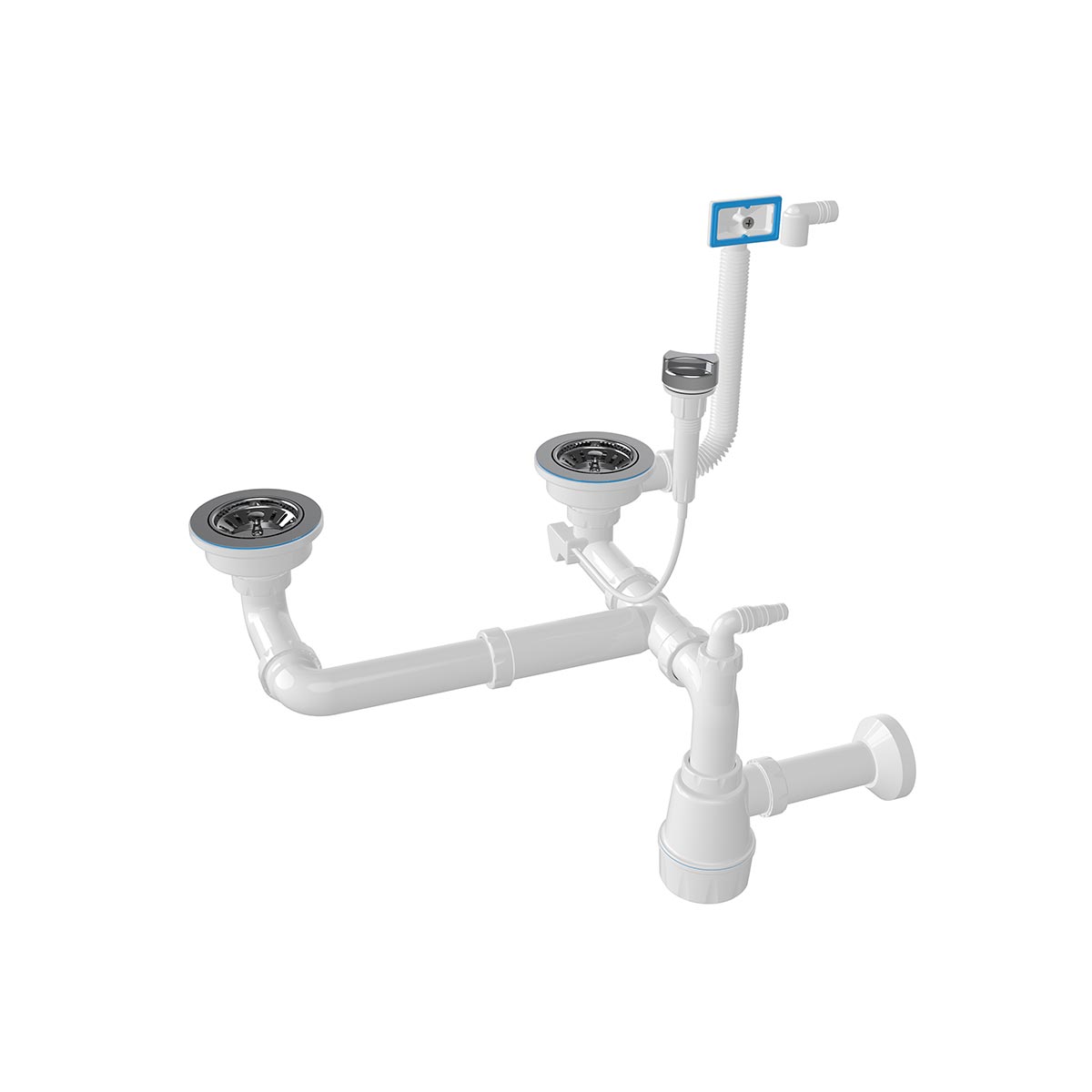 Automatic 3 ½ Drain, Maxi Bottle Trap Siphon for Double Bowl Sinks with Machine Connection and Overflow